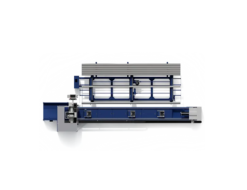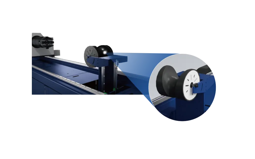Het systeem verzorgt het automatisch aanvoeren van ruwe materialen en ondersteunt lange werkstukken tijdens het profielsnijden, waardoor handmatig laden overbodig wordt. Dit zorgt voor een stabielere aanvoer, vermindert trillingen bij hoge rotaties, verhoogt de snijnauwkeurigheid, beperkt doorbuiging van de buizen, verbetert de rechte ligging van de buis en voorkomt ongewenst bewegen tijdens het snijden.