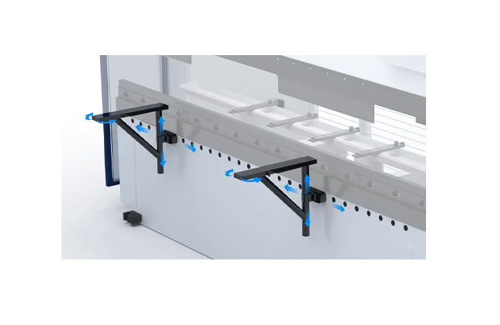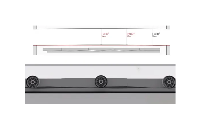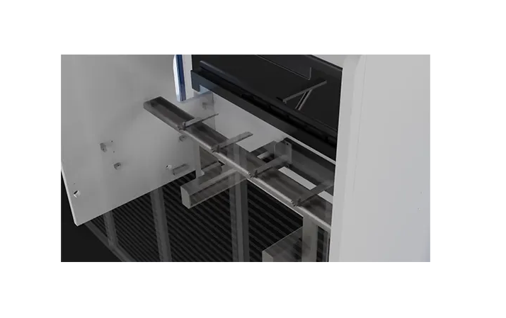 Aan beide zijden van het machineframe zijn C-vormige platen gemonteerd, waarin een hoogwaardige lineaire encoder is geïntegreerd. Dit voorkomt dat eventuele vervorming van het frame de buignauwkeurigheid beïnvloedt.