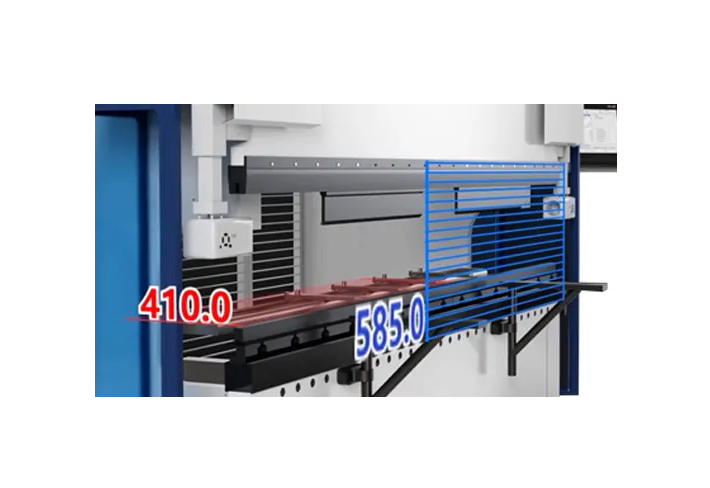 De machine heeft een slag van 235 mm, een sluithoogte van 585 mm en een halsdiepte van 410 mm. Hierdoor wordt het verwerkingsbereik aanzienlijk vergroot en kunnen grotere en complexere werkstukken efficiënt worden gebogen. Tegelijkertijd wordt het risico op aanpassingen of extra machinegereedschappen door werkstukwisselingen tot een minimum beperkt, wat de productiviteit en flexibiliteit verhoogt.